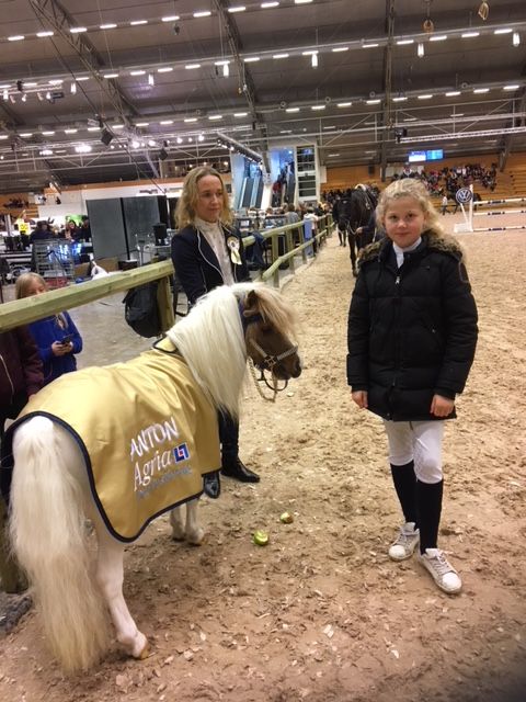 Anton, minishettis och hingst, är en välkänd maskot för Agrias Ponnyklubb. Det är också han som i december iklädd tomteluva kommer att vara med och lämna över de pengar som Agrias Ponnyklubb samlade in till Almers hus under Elmia Scandinavian Horse Show. FOTO: Kicki Sander, Agrias Ponnyklubb.