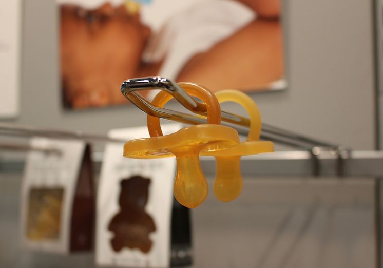 Rågummi kommer starkt som naturlig och ekologisk produkt för de minsta. Rätt Start visade bland annat nappar i rågummi på Allt för Barn & Baby. Foto: Elmia AB.