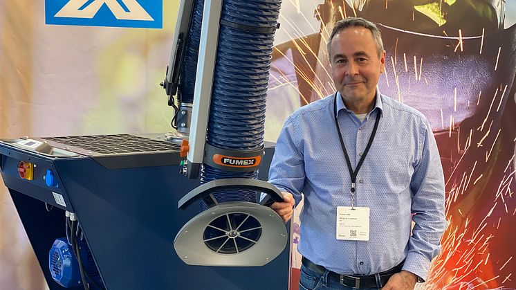 De är specialister på utsug, fläktar och filter för alla slags arbetsmiljöer men det var evakueringen av svetsrök som blev startskottet för Fumex. Från tillverkning i Skellefteå säljs utrustning över hela världen – och visas just nu på Elmia Svets och Fogningsteknik. – Svetsutsug är ju i fokus här, och det var ju så Fumex föddes en gång på 70-talet, berättar Rickard Lindblad.